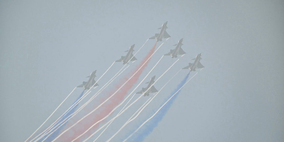 有时,歼 10 掠过阴暗的天空时几乎看不到它们的形状。