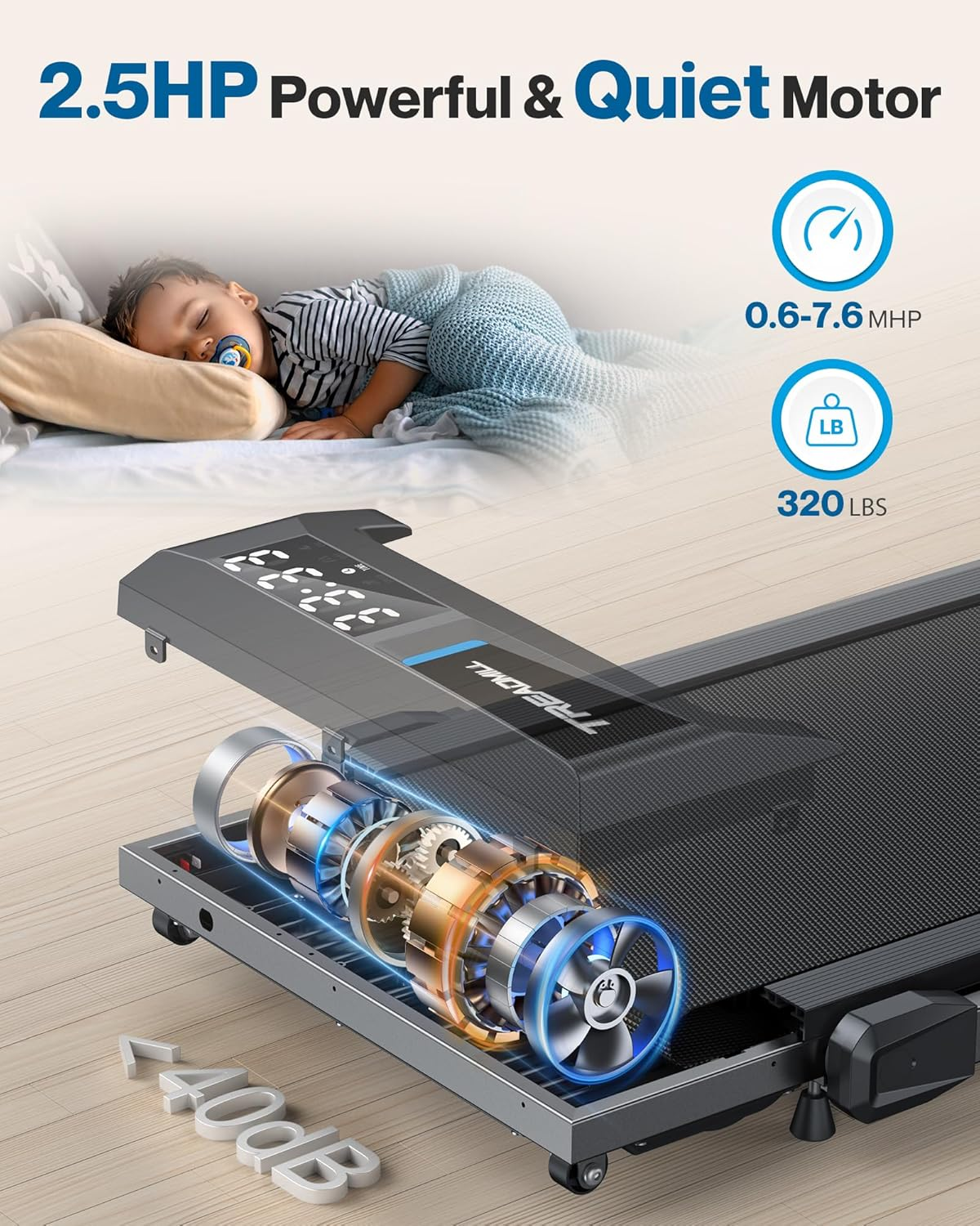 COZYINN 步行垫由 2.5HP静音电机,支持用户称重 320磅。跑步机提供的速度范围为 0.6 至 7.6 英里/小时,为各种锻炼强度提供灵活性,从休闲步行到快节奏跑步。尽管性能强劲,电机仍可运行 低声细语,确保用户可以在不干扰周围环境的情况下锻炼,无论是在办公室、公寓还是家里。