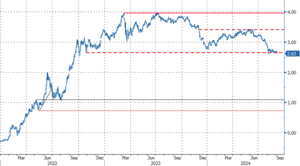 欧洲两年期掉期收益率难以摆脱近期低点/支撑区域