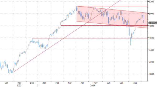 EuroStoxx50 昨日完美收复熊市后继续下跌。4800 支撑位即将被测试?