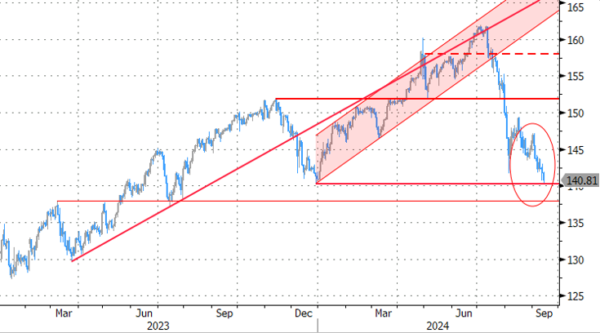美元/日元:市场继续押注美联储和日本央行政策进一步分化,测试 2023 年底低点
