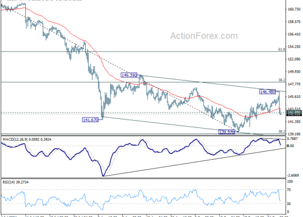 从更大的角度来看,从中期顶部 161.94 的下跌被视为对 102.58(2021 年低点)的整体上升趋势进行修正。 102.58 至 161.94 的 38.2% 回撤位 139.26 可能会出现强劲支撑,以遏制下行趋势,至少在第一次尝试时是如此。但无论如何,只要守住149.35阻力位,风险就会持续下行。持续突破139.26将开启中期更深跌势,至61.8%回撤位125.25。