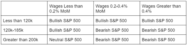 查看发布的数据,我整理了一份清单,列出了工资增长和非农就业数据对标准普尔 500 指数可能产生的潜在影响。这只是我的预期,并不能保证这就是我们可能从市场得到的反应,但可能是一个有用的指南。
