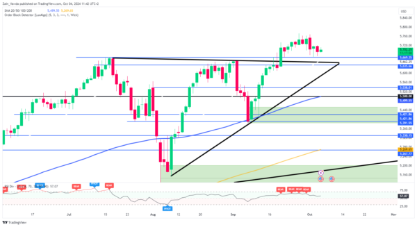 标准普尔 500 指数日线图,2024 年 10 月 4 日