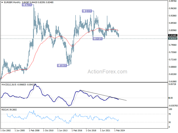 从更大的角度来看,从0.9267(2022年高点)开始的下跌趋势正在进行中。下一个目标是0.8201(2022年低点),但应该会看到那里的强劲支撑带来反弹。不过,即使强劲反弹,只要守住0.8624阻力位,后市仍将看跌。果断突破0.8201将表明长期看跌逆转。