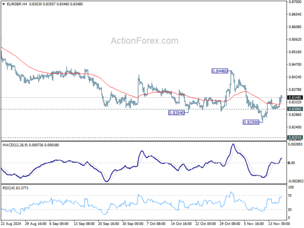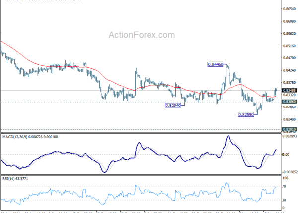 欧元/英镑上周小幅下跌至 0.8259,但此后有所回升。本周初步偏见保持中性,只要守住 0.8446 阻力位,前景就保持看跌。下行方面,低于0.8306次要支撑位将首先将偏向转回下行方向0.8259,然后是0.8201关键支撑位。尽管如此,坚守0.8446将确认短期触底。