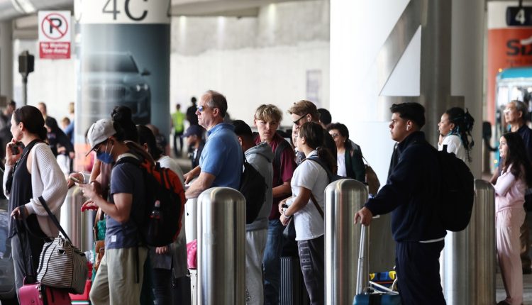周五劳动节假期到来前,旅客们在洛杉矶国际机场等候登机。