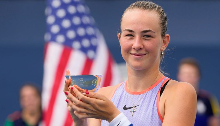 周六,15 岁的米卡·斯托伊萨夫列维奇以 6-4 6-4 击败日本对手园部和可奈,在纽约捧起冠军杯。