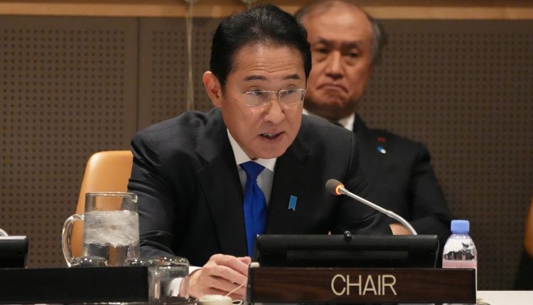 2024 年 9 月 23 日,日本首相岸田文雄在纽约联合国总部举行的启动“裂变材料禁产条约之友”高级别会议上发表讲话。