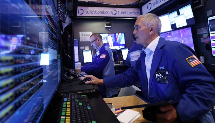 2024 年 4 月 4 日,美国纽约市纽约证券交易所 (NYSE) 交易大厅内,交易员在显示器上显示市场信息。