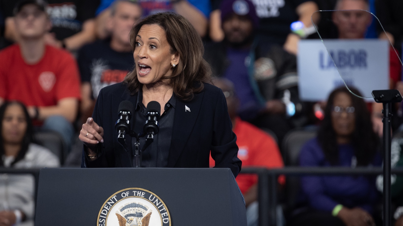 副总统哈里斯于 10 月 4 日在密歇根州弗林特举行的集会上发表讲话。