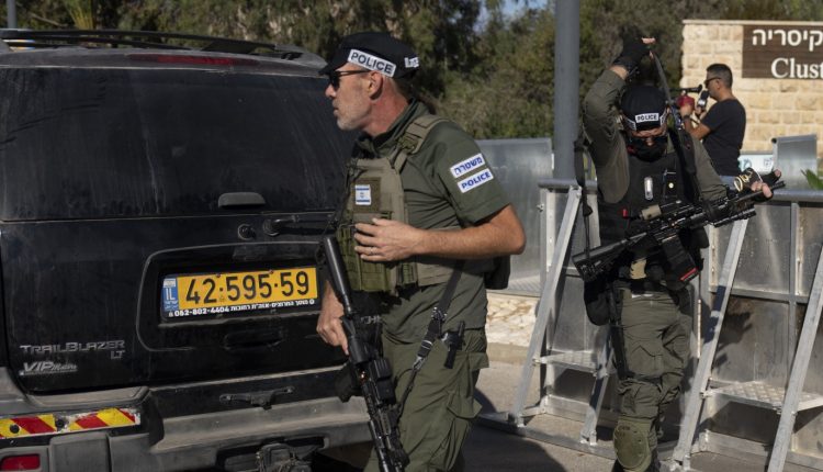 以色列安全部队在以色列政府称周六在以色列凯撒利亚的以色列总理本杰明·内塔尼亚胡的住宅附近发射一架无人机的道路上确保安全。