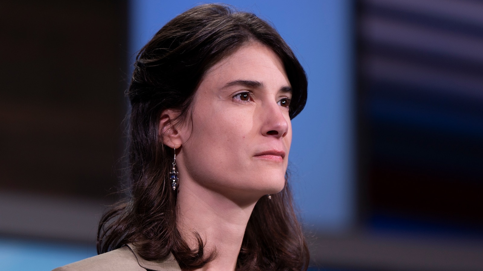 2024 年 10 月 7 日,华盛顿州民主党众议员玛丽·格鲁森坎普·佩雷斯 (Marie Gluesenkamp Perez) 在俄勒冈州波特兰市听华盛顿第三区辩论。
