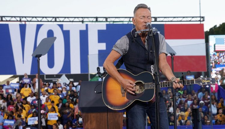 斯普林斯汀在民主党候选人的集会上表演,利用演讲间隙的时间进行辩论 哈里斯女士 将保护民主并争取妇女的生殖权利。
