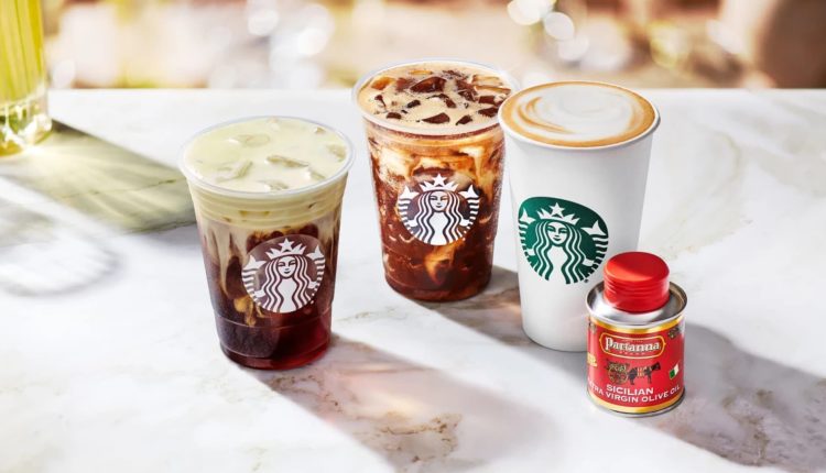 Oleato 饮料系列将 Partanna 橄榄油融入星巴克的拿铁咖啡、冰摇浓缩咖啡和冷泡沫中。咖啡师将橄榄油和燕麦奶一起蒸制成拿铁,在冰镇浓缩咖啡中摇匀,然后将其注入香草甜奶油泡沫中,以搭配冷萃咖啡。