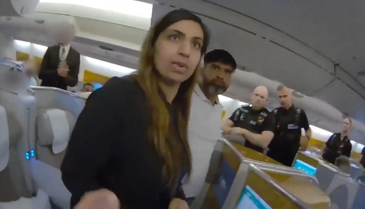 周五向陪审团展示的警察穿戴视频片段捕捉到了警察于晚上 7 点 42 分(即飞机着陆后七分钟)登上飞机并拘留被告的那一刻。