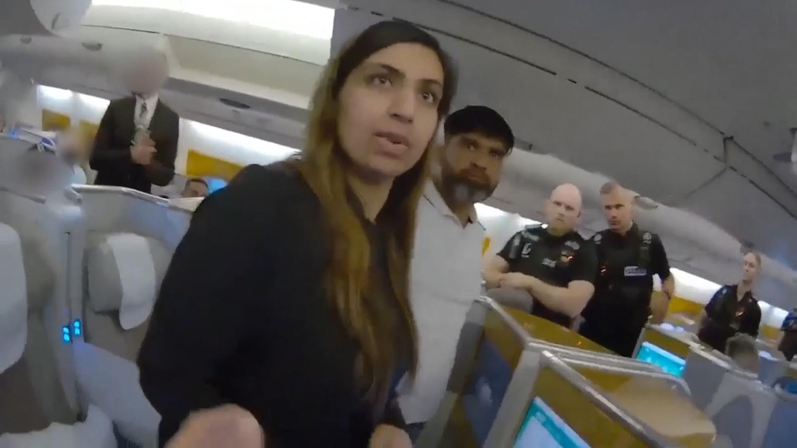 法庭上播放了警方登上返回英国的飞机后拘留 10 岁萨拉·谢里夫的凶手的那一刻的视频。
